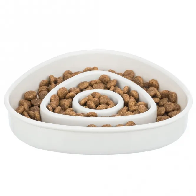 Entdecken Sie den cleveren Begleiter für entspannte Mahlzeiten: Ein flacher Napf, der Ihr Katzenfreund vor zu schnellem Fressen schützt und pure Freude am Essen weckt.