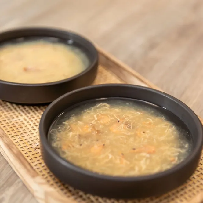 Hergestellt aus Hühnerbrühe, zartem Fleisch und edlem Fisch – eine harmonische Mischung, die Geschmack und Gesundheit vereint. Perfekt als Topping oder pur genossen.