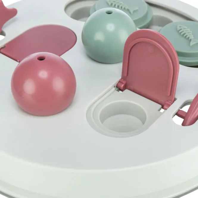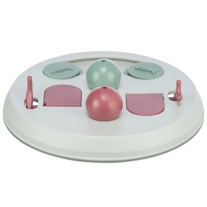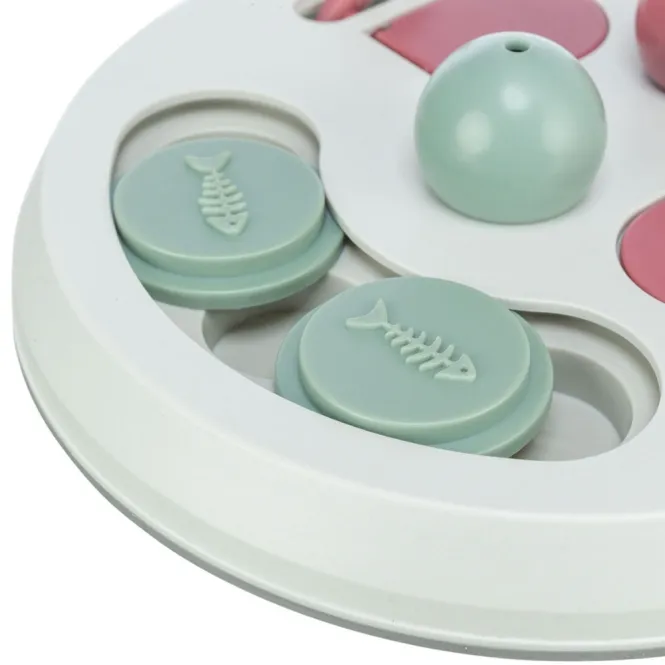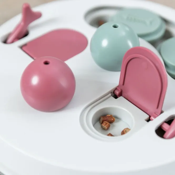Wecken Sie die Neugier Ihrer Katze und fördern Sie ihre natürlichen Jagdinstinkte mit diesem cleveren Brettspiel – pure Intelligenztrainingsspaß in hellgrau, beere und pink.