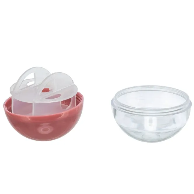 Aufschaubar in Sekundenschnelle, leicht zu befüllen und zu reinigen. Aus robustem Kunststoff gefertigt, mit einem Durchmesser von rund 5 cm – ideal für Katzenpfoten jeder Größe. Farben variieren je nach Verfügbarkeit und sorgen für Abwechslung im Spielalltag.