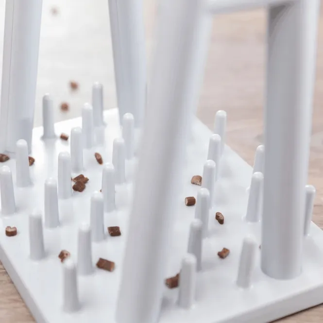 Katzen lieben Herausforderungen, die ihre Sinne schärfen und den Alltag spannend machen. Der Turn Around aus robustem Kunststoff bietet genau das: Eine stabile Grundplatte mit Zapfen trägt einen drehbaren Ständer mit drei unabhängigen Bechern, die jeweils mit einem Deckel sichern lassen. Verstecken Sie Leckerlis darin, und beobachten Sie, wie Ihre Katze Strategie, Pfotengeschick und Ausdauer einsetzt, um die Belohnung zu erobern.