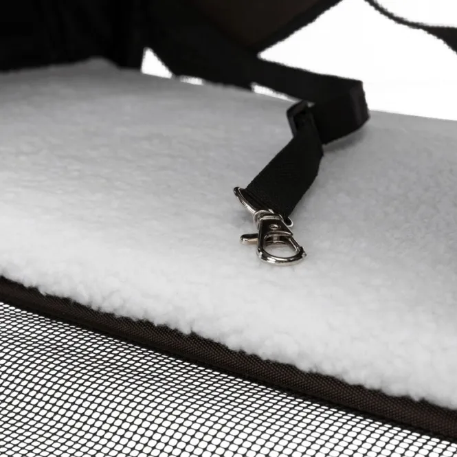 Der verstellbare Schulterriemen sorgt für gleichmäßige Gewichtsverteilung, während die integrierte Kurzleine jegliche Ausbruchsversuche vereitelt. Die weiche, gepolsterte Bodenplatte im Lammfell-Look aus Polyester lädt zum Kuscheln ein und lässt sich kinderleicht herausnehmen – für blitzsaubere Pflege.