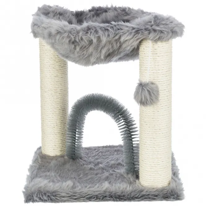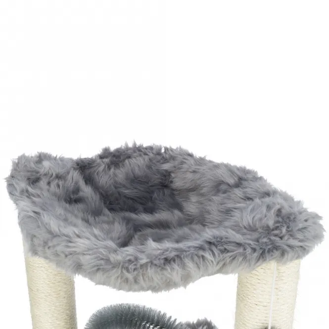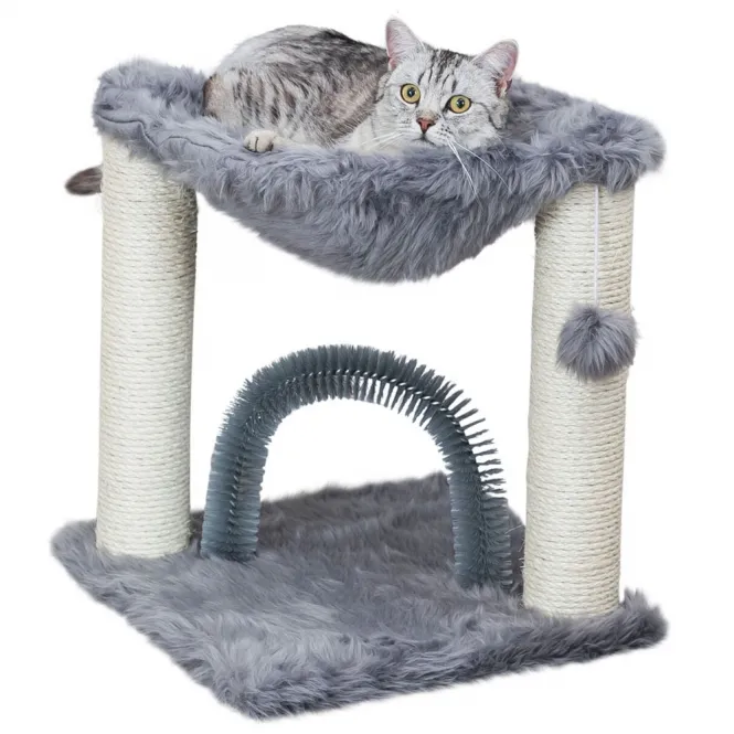 Stellen Sie sich vor, Ihre Samtpfote klettert geschickt über robuste Sisalstämme mit 6 mm Durchmesser, schärft die Krallen und erkundet neue Höhen. Die integrierte Liegemulde aus weichem Langhaar-Plüsch (420 g/m²) lädt zum entspannten Dösen ein, während der innovative Fellpflegebogen die Haut massiert und lose Haare schonend entfernt – eine natürliche Alternative zur herkömmlichen Bürste.