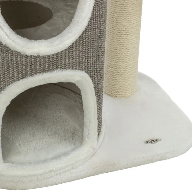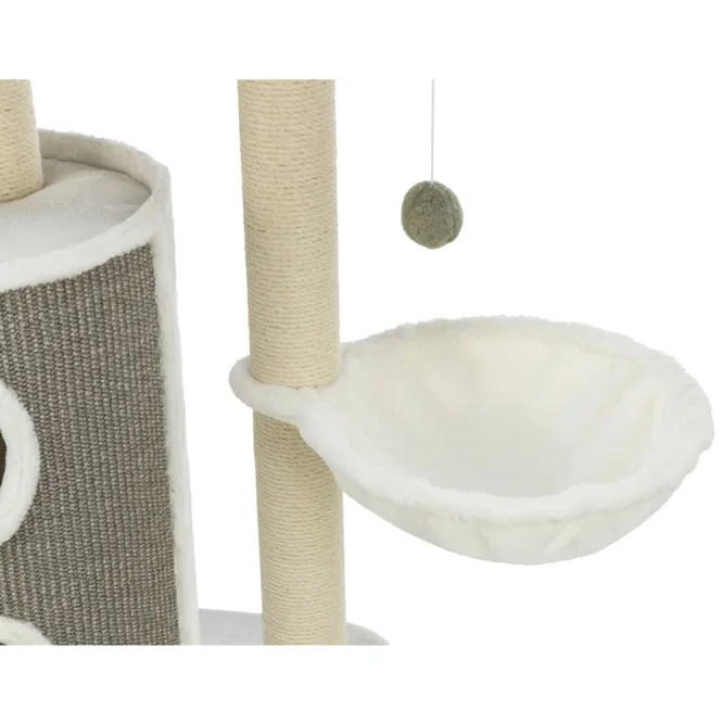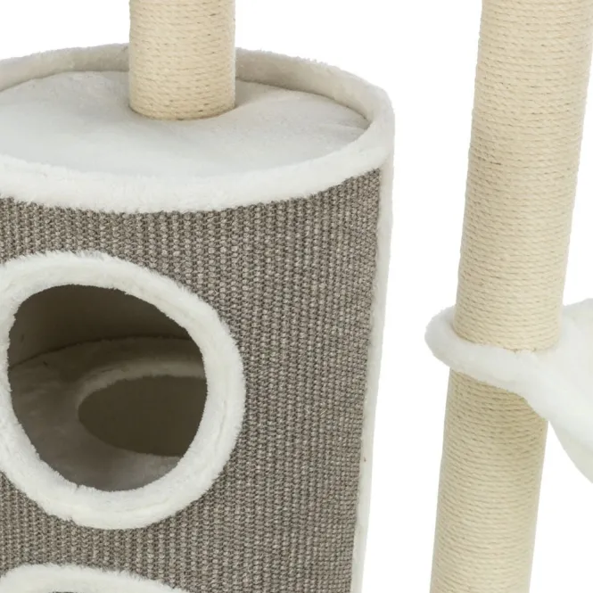Die Tonne mit robuster Sisalkratzfläche aus Jute (ø 5 mm) lädt zum intensiven Krabbeln ein, während die gepolsterte Oberseite pure Wohlfühlmomente bietet. Oben thront ein kuscheliges Bett mit weicher Liegefläche aus Plüsch (280 g/m²) und Filz (550 g/m²), ideal für ausgiebige Nickerchen.