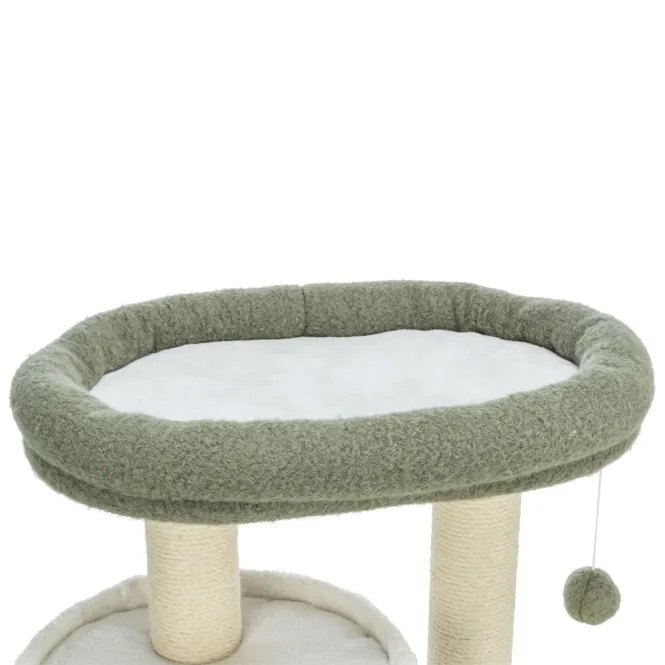 Mit einer Grundfläche von nur ca. 57 × 38 cm und einer Höhe von 86 cm passt dieser Kratzbaum mühelos in jede Wohnung. Der stabile Stamm (Durchmesser 9 cm) sorgt für sicheres Balancieren, unabhängig von akrobatischen Sprüngen. Die frische Farbkombination aus Weiß, Grün und Grau fügt sich harmonisch in moderne Einrichtungen ein.