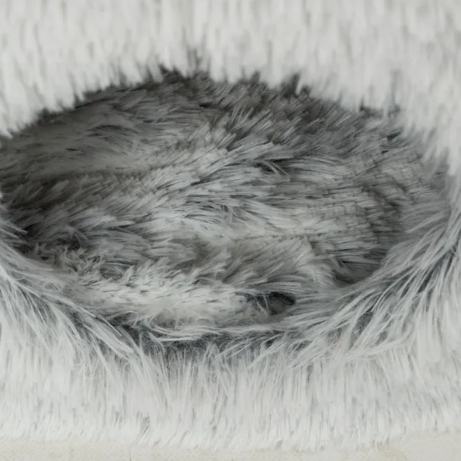 Oben thront ein weiches Kuschelbett mit hohem, gepolstertem Rand aus Langhaar-Plüsch (310 g/m² Polyester) – pure Entspannung garantiert. Darunter lockt eine gemütliche Höhle, bezogen mit kuscheligem Fleece (Polyester) und einem praktischen Wendekissen, das einfach per Handwäsche erfrischt wird. In zeitlosem Grau fügt er sich nahtlos in jedes Interieur ein.