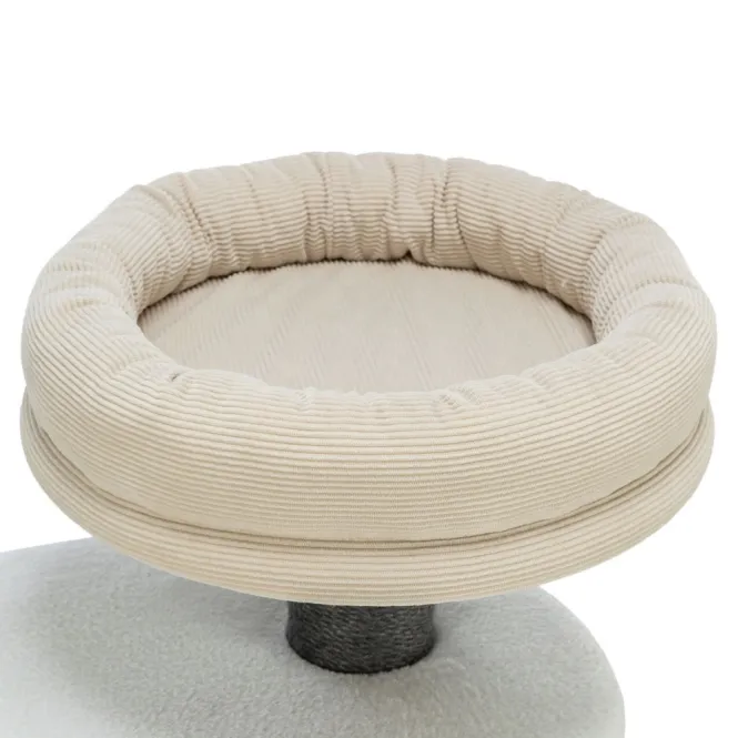 Mit einem robusten Stamm von 9 cm Durchmesser und einer stabilen Basis von 38 cm ø steht er bombenfest – ideal für ausgelassene Kletterabenteuer bis zu 85 cm Höhe. Die einladende Höhle mit kratzfester Sisalummantelung wird zum perfekten Versteck, während die gepolsterte Liegeplatte mit abnehmbarem Kuschelbett aus weichem Plüsch (280 g/m²) und Cord-Bezug (230 g/m²) pure Wohlfühlmomente schafft. Robustes Jute-Seil mit 5 mm ø lädt zu intensivem Kratzen ein, ohne Abnutzung.