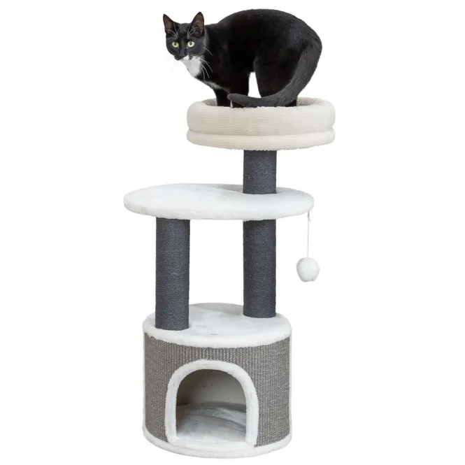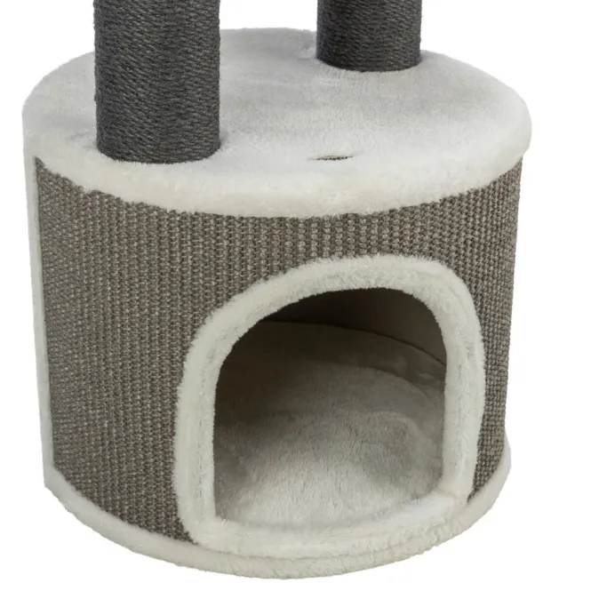 Entdecken Sie den ultimativen Rückzugsort für Ihre Katze: Ein Kratzbaum, der Spaß, Sicherheit und Stil in perfekter Harmonie vereint. In neutralen Tönen von Weiß, Beige und Grau fügt er sich nahtlos in Ihr Zuhause ein.
