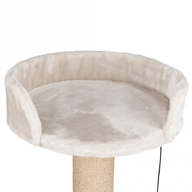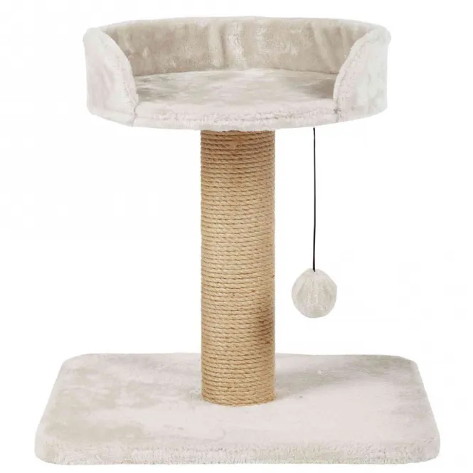 Mit einer Höhe von rund 46 cm und einer stabilen Grundfläche von 45 x 35 cm passt er nahtlos in kleine Räume oder als Ergänzung zu größeren Möbeln. Der zentrale Stamm mit 9 cm Durchmesser ist umwickelt mit robustem Juteseil (6 mm), das endlosen Kratzspaß bietet und die Krallen natürlich schärft.