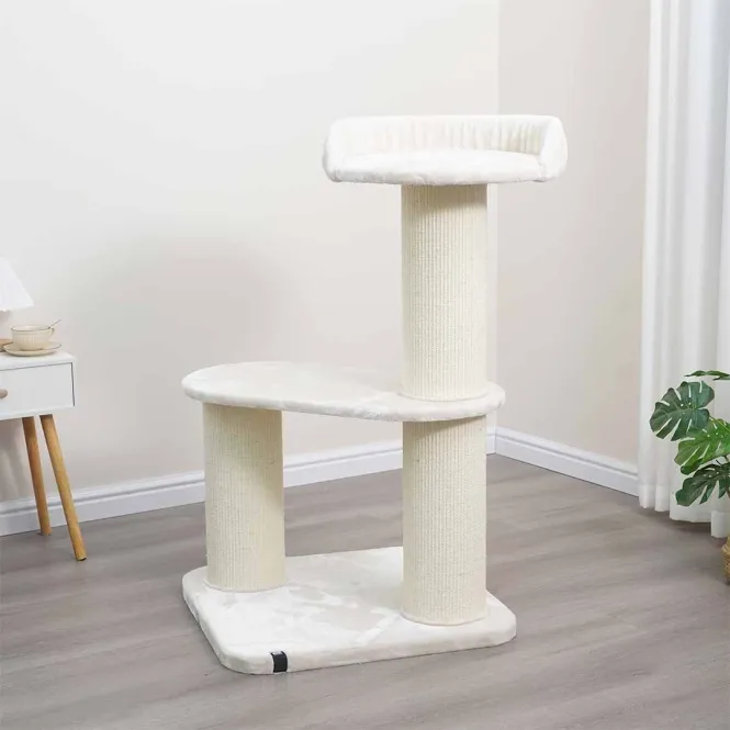 Ob als bequemer Ausguck oder praktische Stufe zum oberen Körbchen – die integrierten Liegeflächen passen sich jedem Spieltrieb an. Ein niedriger Einstieg erleichtert den Zugang für Katzen aller Altersstufen und Größen. Das sanfte Creme-Design fügt sich nahtlos in moderne Einrichtungen ein und widersteht jahrelanger intensiver Beanspruchung.