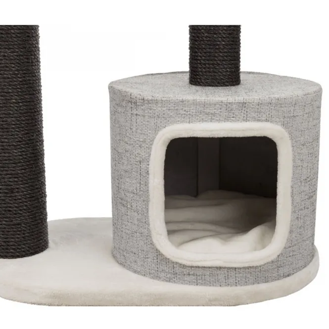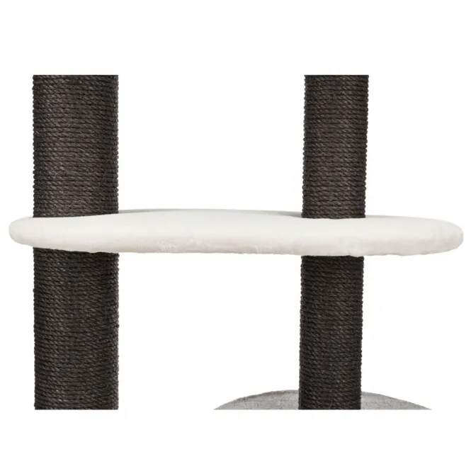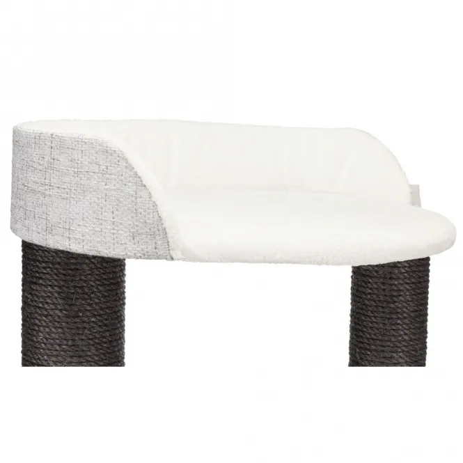 Zwei gepolsterte Liegeflächen in Weiß und Grau bieten perfekte Plätze zum Faulenzen. Die stabile Konstruktion mit Stammdurchmessern von 12 und 15 cm sorgt für Sicherheit und Langlebigkeit. Mit einer Höhe von 128 cm und kompakter Basis (78 x 48 cm) integriert er sich nahtlos in Ihr Wohnzimmer – viel Kletterspaß auf kleinem Raum.