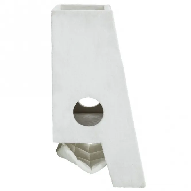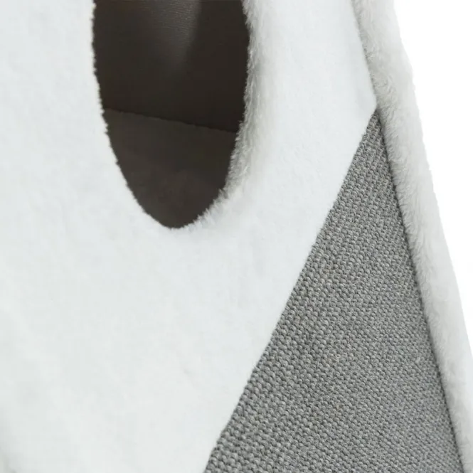 Gefertigt aus strapazierfähigem Sisal und weichem Plüsch (280 g/m² Polyester), mit Fleece-verkleideten Höhlen und einem waschbaren Wendekissen. Die gepolsterte, lichtgraue Liegefläche verleiht ein stilvolles Finish. Mit Grundfläche von ca. 49 × 59 cm und Höhe von ca. 110 cm eignet es sich hervorragend für kompakte Wohnräume.