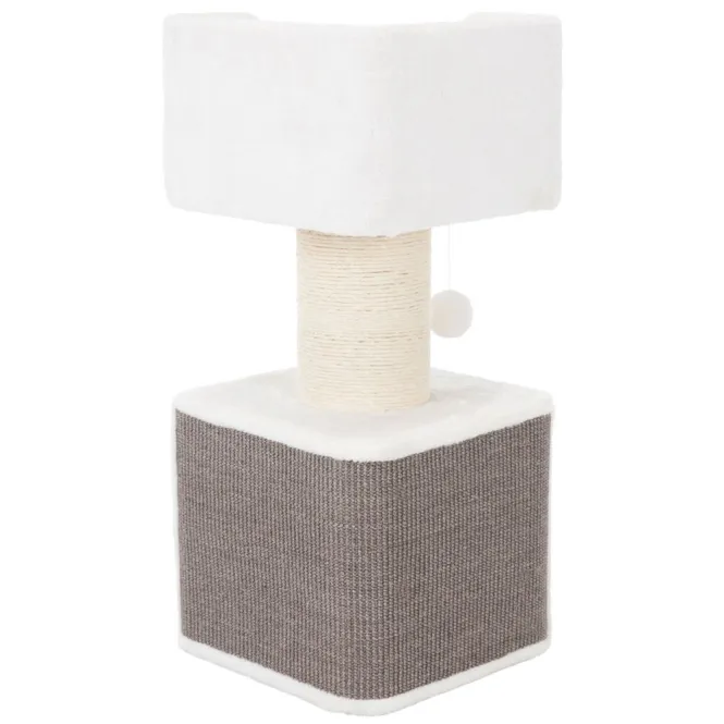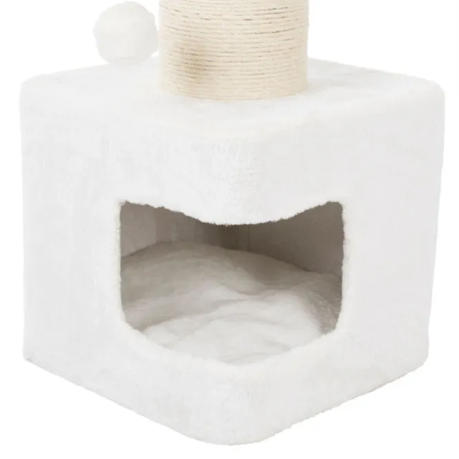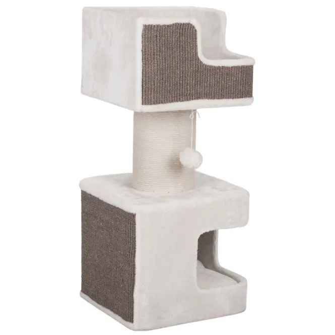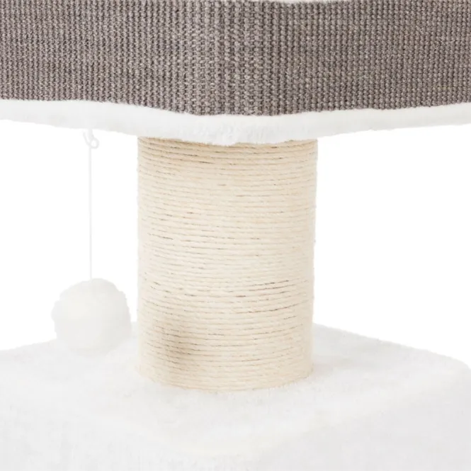 Die integrierte Höhle ist vollständig mit weichem Plüsch (280 g/m², Polyester) ausgekleidet und kommt mit zwei praktischen Wendekissen – einfach per Handwäsche zu pflegen. In edlem Weiß-Grau-Ton passt er nahtlos in jedes Heiminterieur und erfüllt höchste tierschutzrechtliche Standards nach § 18 (AT).