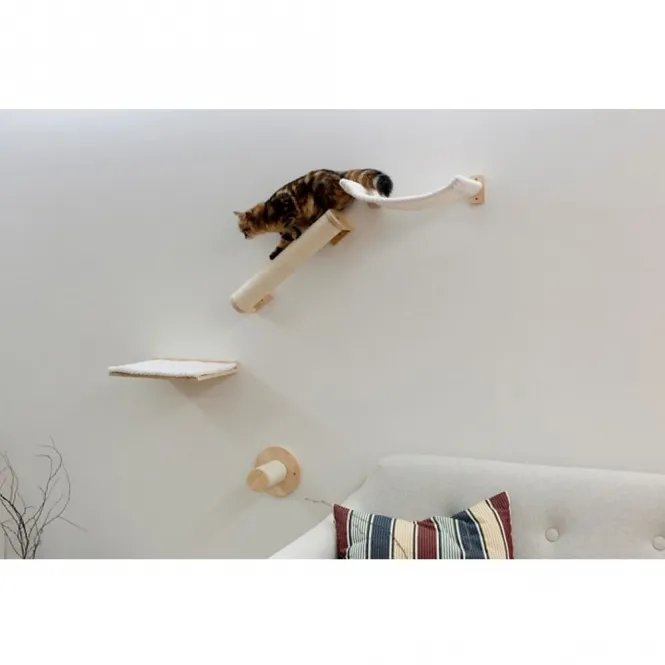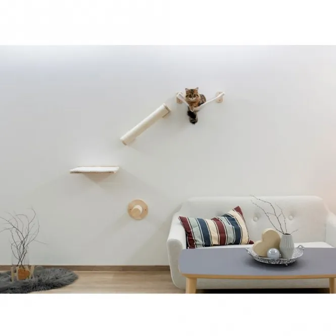 Die vierteiliges Set verwandelt jede freie Wandfläche in ein vertikales Paradies. Von der stabilen Trittstufe über das gemütliche Liegebrett mit abnehmbarem Kissen bis hin zur dynamischen Sisalsäule als Rampe und der entspannenden Hängematte – jedes Element ist präzise aufeinander abgestimmt.