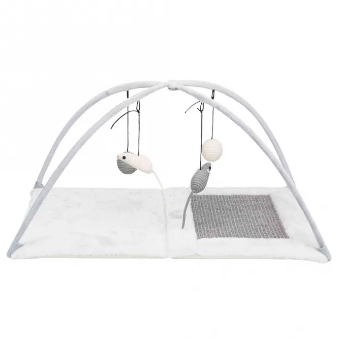Zwei spielerische Elemente wecken Instinkte und fördern Bewegung. In lichtgrauem Design verschmilzt sie harmonisch mit jeder Einrichtung und wird zum Favoriten Ihrer Katze.