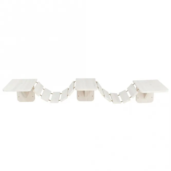 Aus robustem Holz gefertigt und mit kratzfestem Sisal umhüllt, bietet diese clevere Kletterleiter drei stabile Plattformen zum Entspannen und Beobachten. Die äußeren Flächen maßen großzügig 22,5 × 30 cm, die mittlere 17,5 × 30 cm – perfekt als Ergänzung zu Kletterlandschaften oder als solitärer Star.