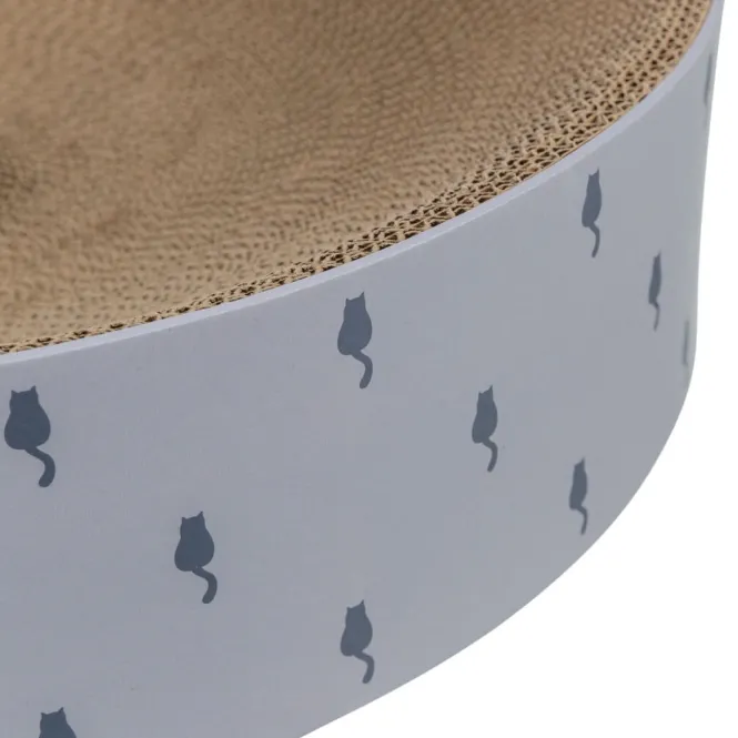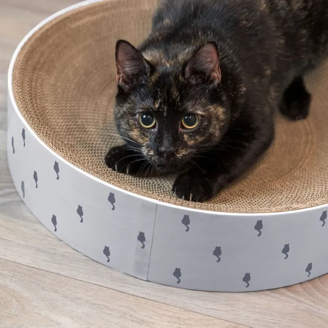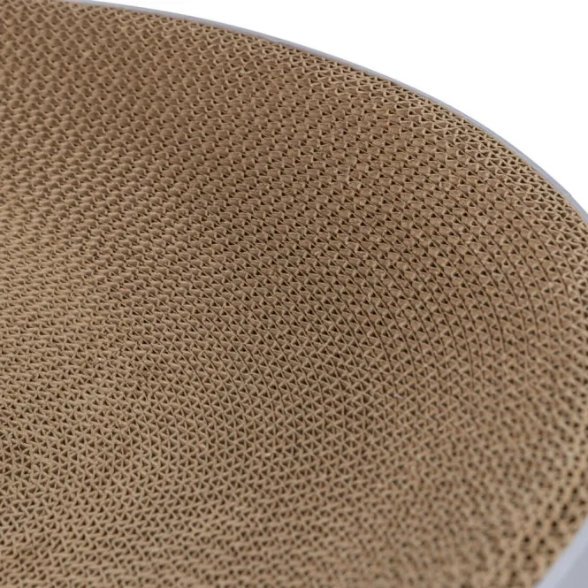 Tauchen Sie ein in ungebremste Katzenlust: Das runde Kratzbett aus strapazierfähiger Wellpappe, angereichert mit unwiderstehlichem Catnip, wird zum ultimativen Spiel- und Ruheplatz.