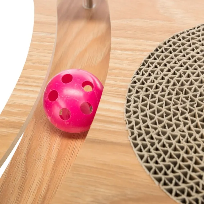 Gefertigt aus strapazierfähigem MDF und umrahmt von einem soliden Holzgerüst, widersteht sie selbst den wildesten Kratzattacken. Der natürliche Sisalbezug regt zum instinktiven Schaben an, ergänzt durch vier integrierte Kunststoff-Spielbälle, die Jagdinstinkte wecken. Ein Hauch Katzenminze verstärkt den Reiz und verwandelt Routine in Highlights.