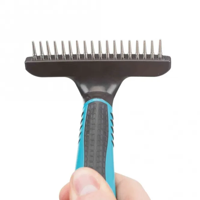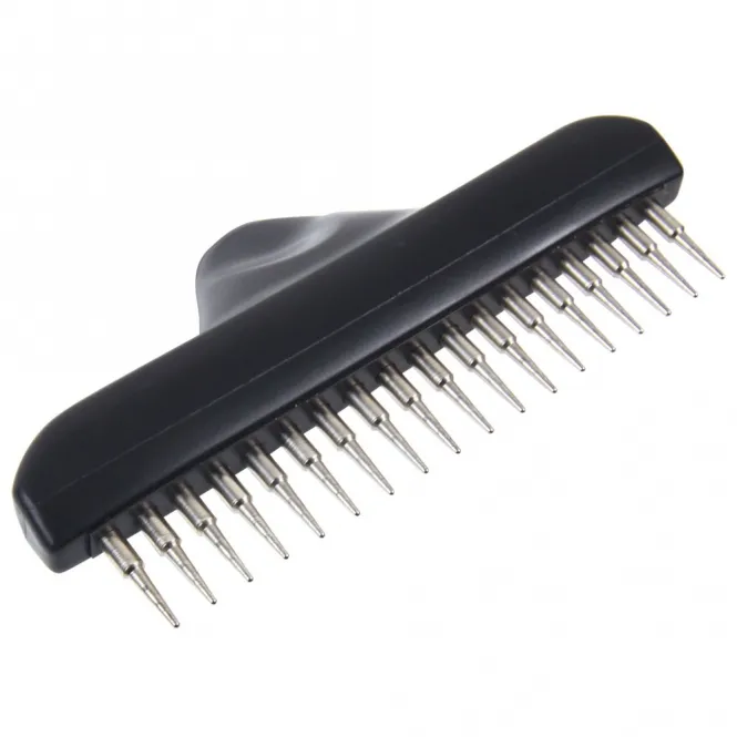 Der ergonomische Kunststoffgriff mit rutschfester Gummieinlage liegt sicher in der Hand, auch bei nassem Fell. Kompakte Maße von 10 × 15 cm machen ihn zum treuen Begleiter für den täglichen Pflege-Ritual zu Hause.