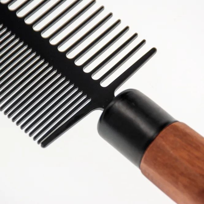 Mit seiner doppelseitigen Ausführung – 17 Zähne auf der groben Seite und 35 auf der feinen – gleitet dieser Kamm mühelos durch jedes Fell. Abgerundete Zähne sorgen für sanfte Pflege, die Verfilzungen löst, ohne die Haut zu reizen. Der ergonomische Griff aus FSC-zertifiziertem Buchenholz mit dunkel gebeizter Oberfläche liegt perfekt in der Hand und macht langes Bürsten zum Vergnügen.