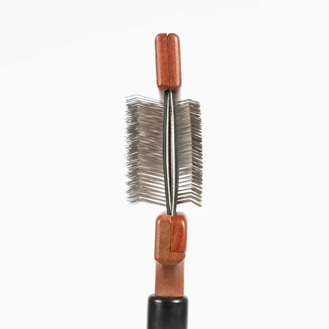 Der flexible Bürstenkopf passt sich nahtlos jeder Kurve an, für ein entspanntes Pflegeritual ohne Stress. Auf einer Seite sorgen kurze Edelstahlstifte für präzise Reinigung, während die längeren auf der anderen Seite tief ins Unterfell vordringen. Lose Haare, Verfilzungen und Schmutz verschwinden spurlos, ohne die empfindliche Haut zu belasten.