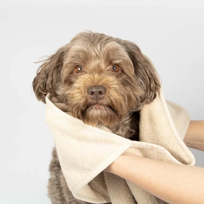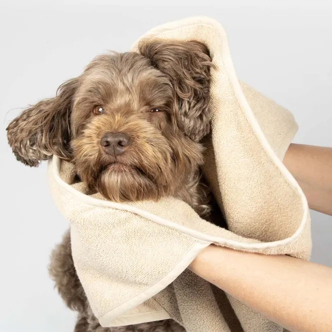 Nach regnerischen Ausflügen oder erfrischenden Sprüngen ins Wasser trocknet dieses Badetuch Ihren Vierbeiner sanft und rasend schnell – in purer Japandi-Eleganz.