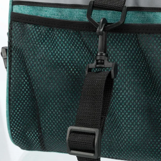 Die herausnehmbare, gepolsterte Bodenplatte sorgt für weichen Schutz, reflektierende Akzente boosten die Sichtbarkeit bei Dämmerung. Aus robustem Polyester in lebendigem Grün gefertigt – passgenau bei 25 x 33 x 50 cm.
