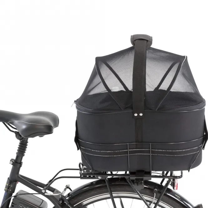 Der robuste Metallrahmen umfasst Gepäckträger von 11,8 bis 16 cm Breite und gewährleistet stabilen Halt ohne Wackeln. Tierschutzkonform und ideal für E-Bikes, eignet er sich perfekt für Hunde bis 6 kg – pure Sicherheit im Alltagstrott.