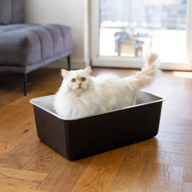 Entdecken Sie zeitlose Eleganz vereint mit unschlagbarer Funktionalität – eine Katzentoilette, die Ihre Katze in luxuriöser Atmosphäre umsorgt und nahtlos in Ihr Zuhause passt.