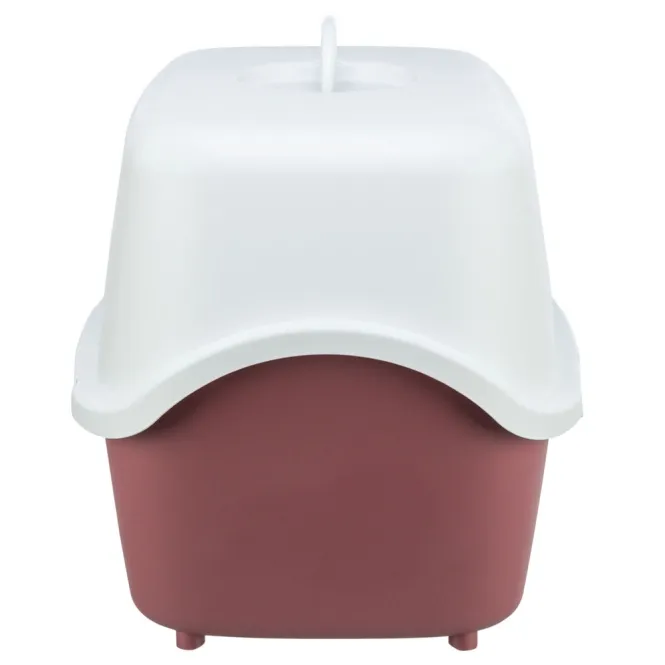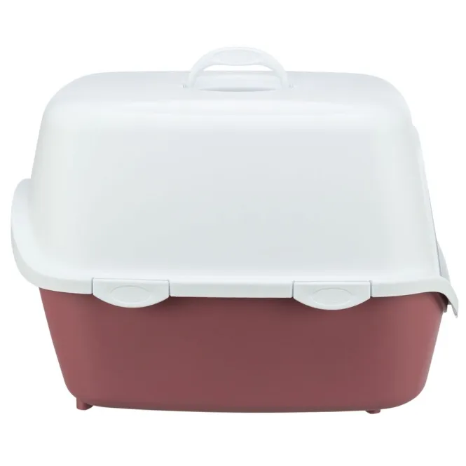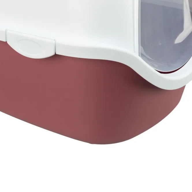 Mit der hohen Haube bietet diese Katzentoilette maximale Diskretion und verhindert, dass Streu herausfliegt. Das innovative Easy-Click-System ermöglicht eine blitzschnelle Montage ohne Werkzeug – ideal für alle, die Wert auf Bequemlichkeit legen. Hergestellt aus robustem, geruchshemmendem Kunststoff in sanften Altrosa- und Weißtönen passt sie nahtlos in jedes Heiminterieur.