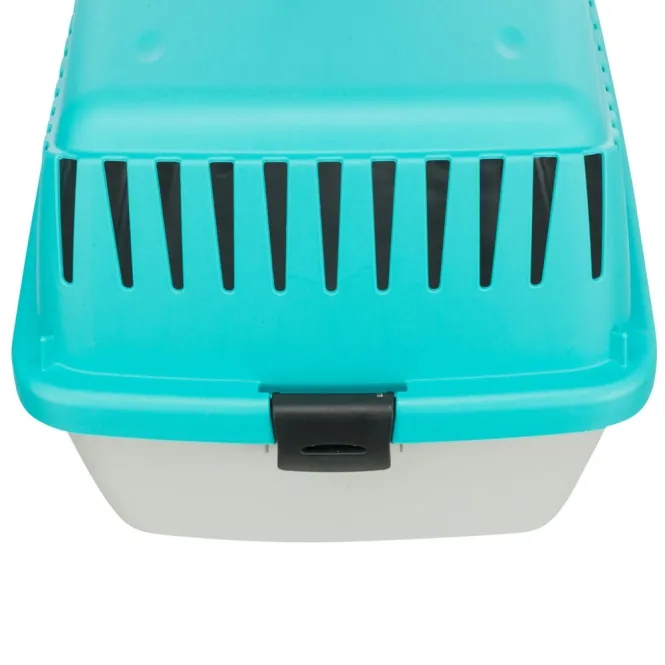 Mit einer frontseitigen Öffnung laden Sie Ihr Tier mühelos und ohne Stress ein oder aus – pure Bequemlichkeit bei jedem Einsatz. Der ergonomische Tragegriff passt sich Ihrer Hand ideal an und verwandelt langes Tragen in ein Leichtes. Aus hochwertigem, robustem Kunststoff gefertigt, präsentiert sie sich in elegantem Hellgrau mit frischen Türkis-Akzenten für Langlebigkeit und Stil.