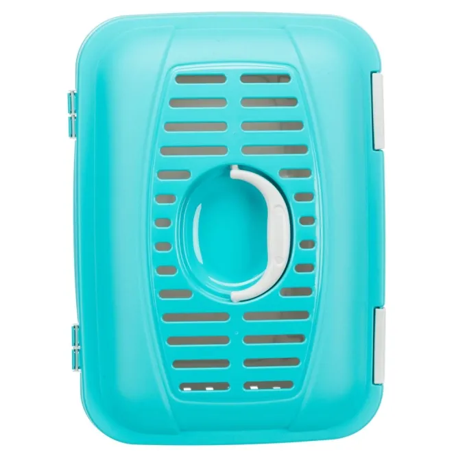 Diese Transportbox öffnet sich bequem von oben, sodass das Ein- und Ausladen zum Kinderspiel wird. Der integrierte Tragegriff und der verstellbare Schultergurt sorgen für entspanntes Tragen, egal ob zum Tierarzt, in den Urlaub oder einfach spazieren. Hergestellt aus hochwertigem Kunststoff in ansprechendem Hellgrau mit Türkis-Akzenten, bietet sie optimale Stabilität und Widerstandsfähigkeit.