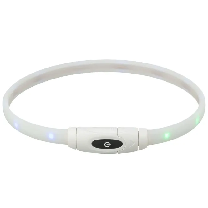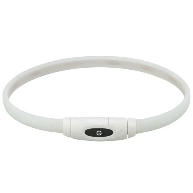 Dieser flexible Leuchtring aus robustem Silikon und hochwertigem Kunststoff umschließt Halsband oder Leine nahtlos und gewährleistet 360-Grad-Sichtbarkeit. Spritzwassergeschützt nach IP44-Standard hält er Regen und Schmutz stand, während die CE-Zertifizierung höchste Qualität und Langlebigkeit verspricht.